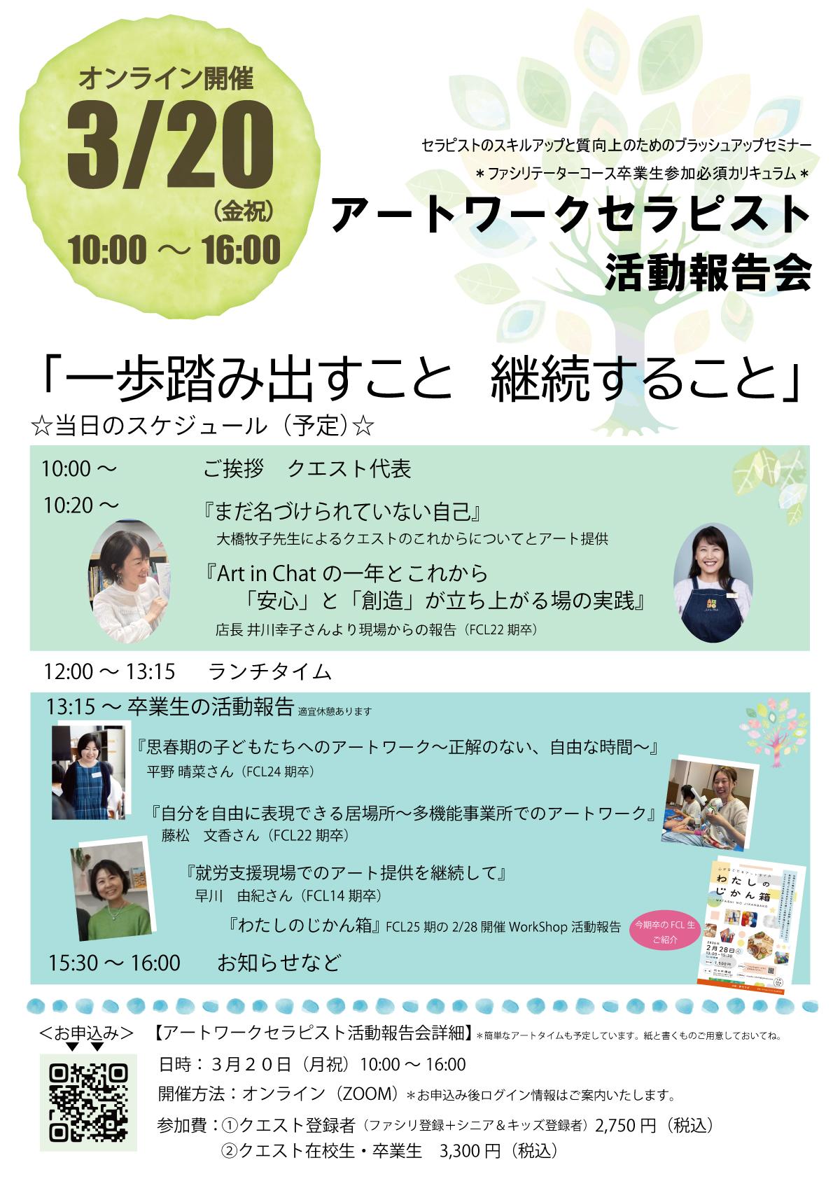 | 参加費 | ①クエスト登録者:2,750円(税込) ②クエスト在校生・卒業生:3,300円(税込) |